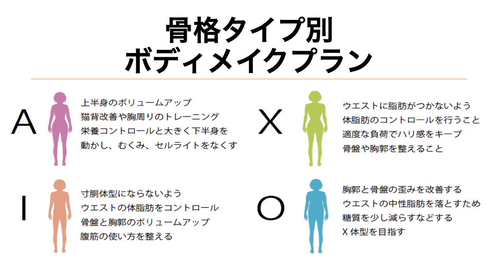 ボディーメイクを成功させるには、骨から整える、体脂肪を減らす、トレーニングで引き締める、それぞれの役割を知った上で適切にやっていくことが大事です。食事を制限するだけ・・トレーニングするだけ・・ではなく、【骨から整える】ここに注目してみてはいかがですか?