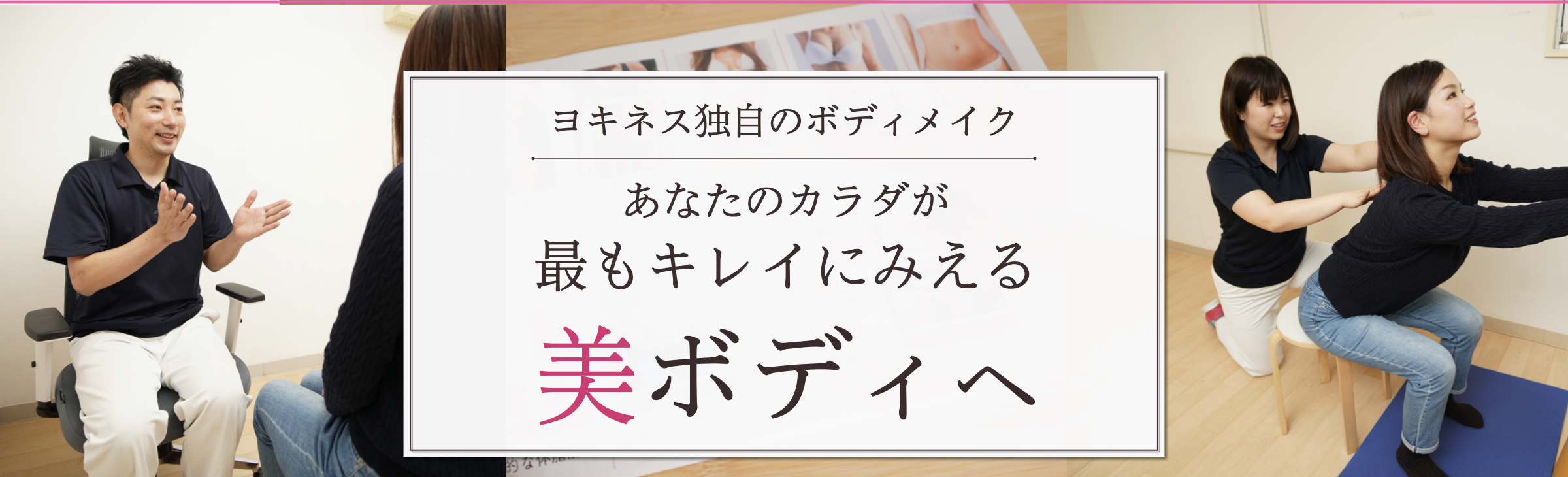 『Yokines』では女性のボディーメイクをしていく際に、骨を整えたうえで、トレーニングと食事の指導をさせて頂いています。